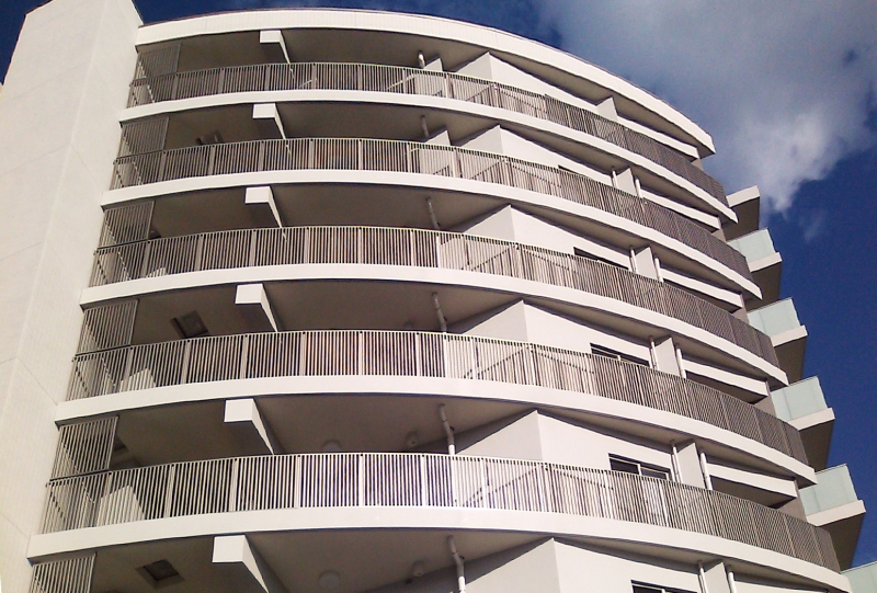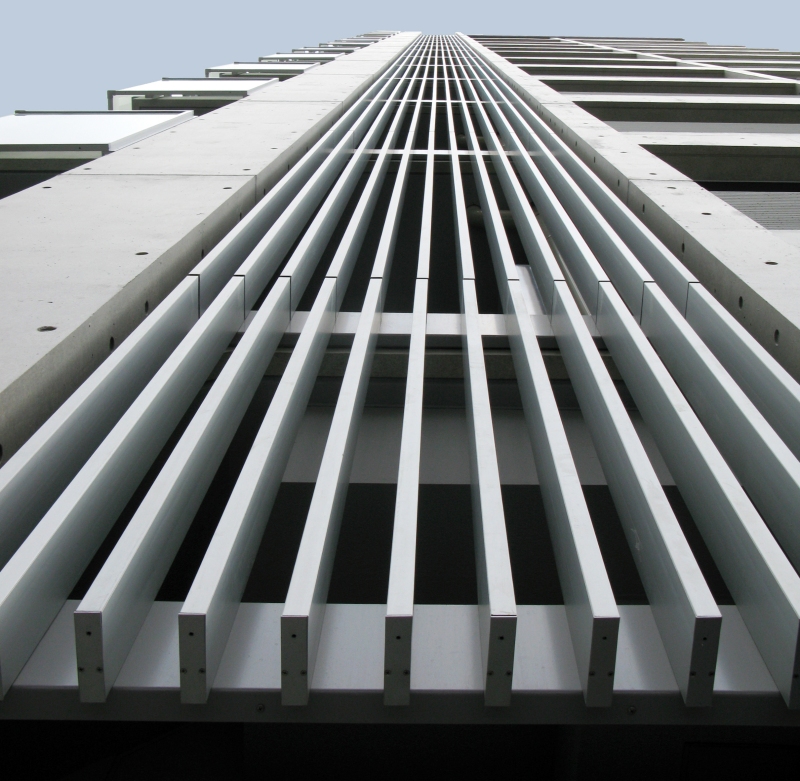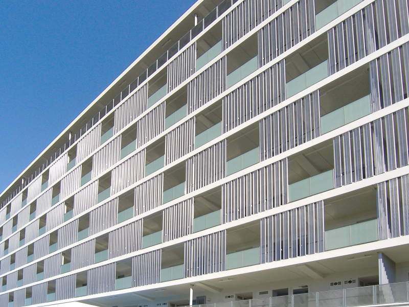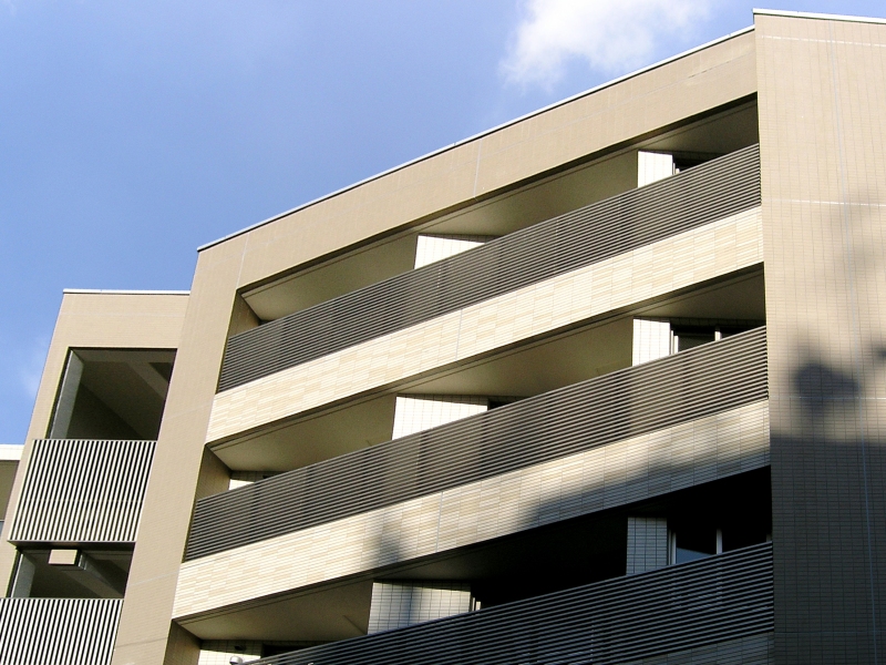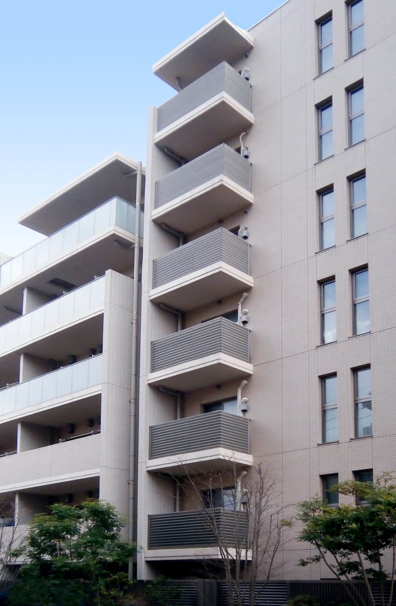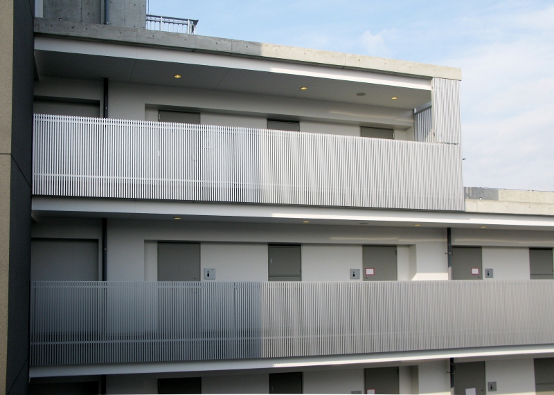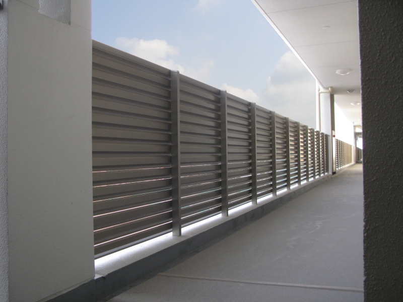 アルミパネル・格子材・石張り・木目調など、パネルの形状や材質は意匠に合わせて自由自在。バルコニーにより自由なデザイン性を持たせます。