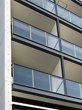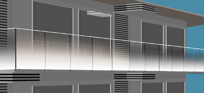躯体と手摺の継ぎ目にルーバーを沿わせた横のラインを印象付けるデザインです。ガラス手摺のみならず、様々なタイプの手摺と組み合わせることができます。 |